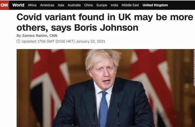 英國首相Boris表示,新冠英國變異毒株比先前的原毒株致死性高出30%…