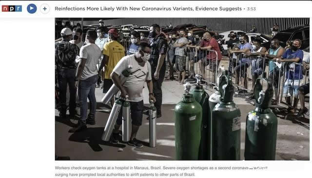 無獨有偶,巴西的變異毒株也在昨天爆出了驚人的壞消息: