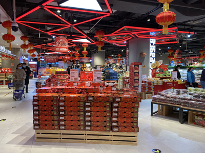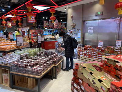 北京一家商超內,來自智利的車厘子被擺放在最顯眼的位置。