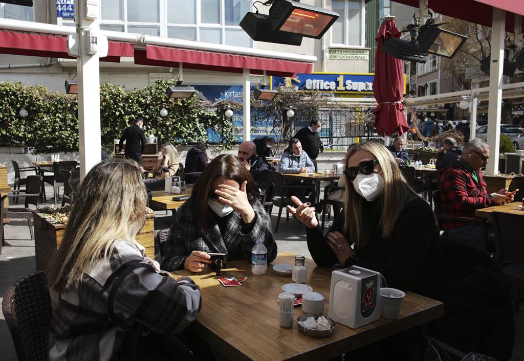 老家在中部西瓦斯省(Sivas)的圖巴(Tugba Tuncer)、杰伊蘭(Ceylan Tuncer)姐妹,2日下午跟朋友坐在安卡拉中心商業區柯澤賴(Kizilay)商圈一家連鎖咖啡店的戶外用餐區喝咖啡、聊天。3個月不能在餐飲業營業場所用餐,一群人都被悶壞了。