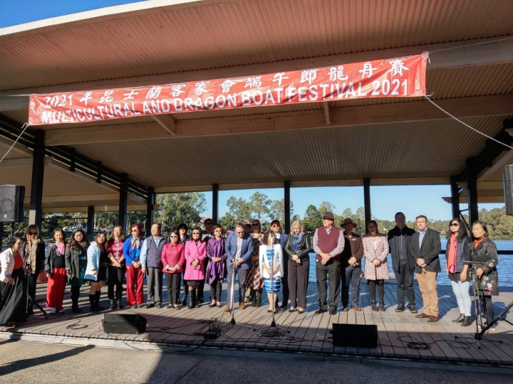 「2021年多元文化節暨端午龍舟賽」6月6日在布里斯本Forest Lake森林湖畔舉行,計吸引臺灣、日本、警察、學校及宗教團體等各界龍舟隊伍共16隊報名參賽。在駐布里斯本辦事處處長陶令文擊鼓助慶及昆士蘭國樂協會悠揚樂聲中揭開序幕,各龍舟隊選手魚貫進入會場,並由昆士蘭客家會會長姜如霞為龍舟點睛,祈願活動平安順利圓滿成功。