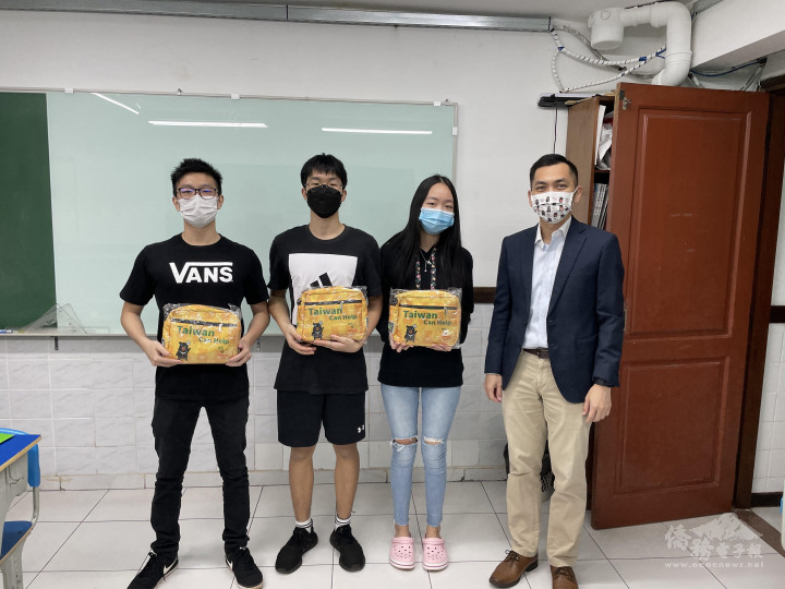 僑務秘書廖建勛致贈僑委會防疫關懷包鼓勵僑校學生踴躍參加比賽