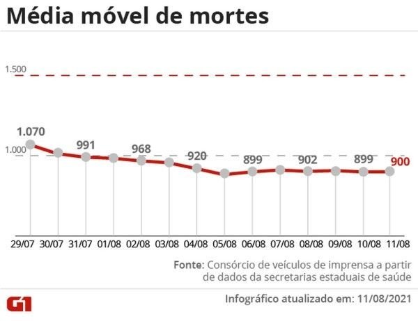 巴西在最近24小時中新記錄了1123名新冠死亡,自疫情開始以來,總共有566013名死者。在最近7天,平均每天有900人死亡。巴西已經連續12天日均死亡人數低於1千人,與14天前相比,減幅為16%。