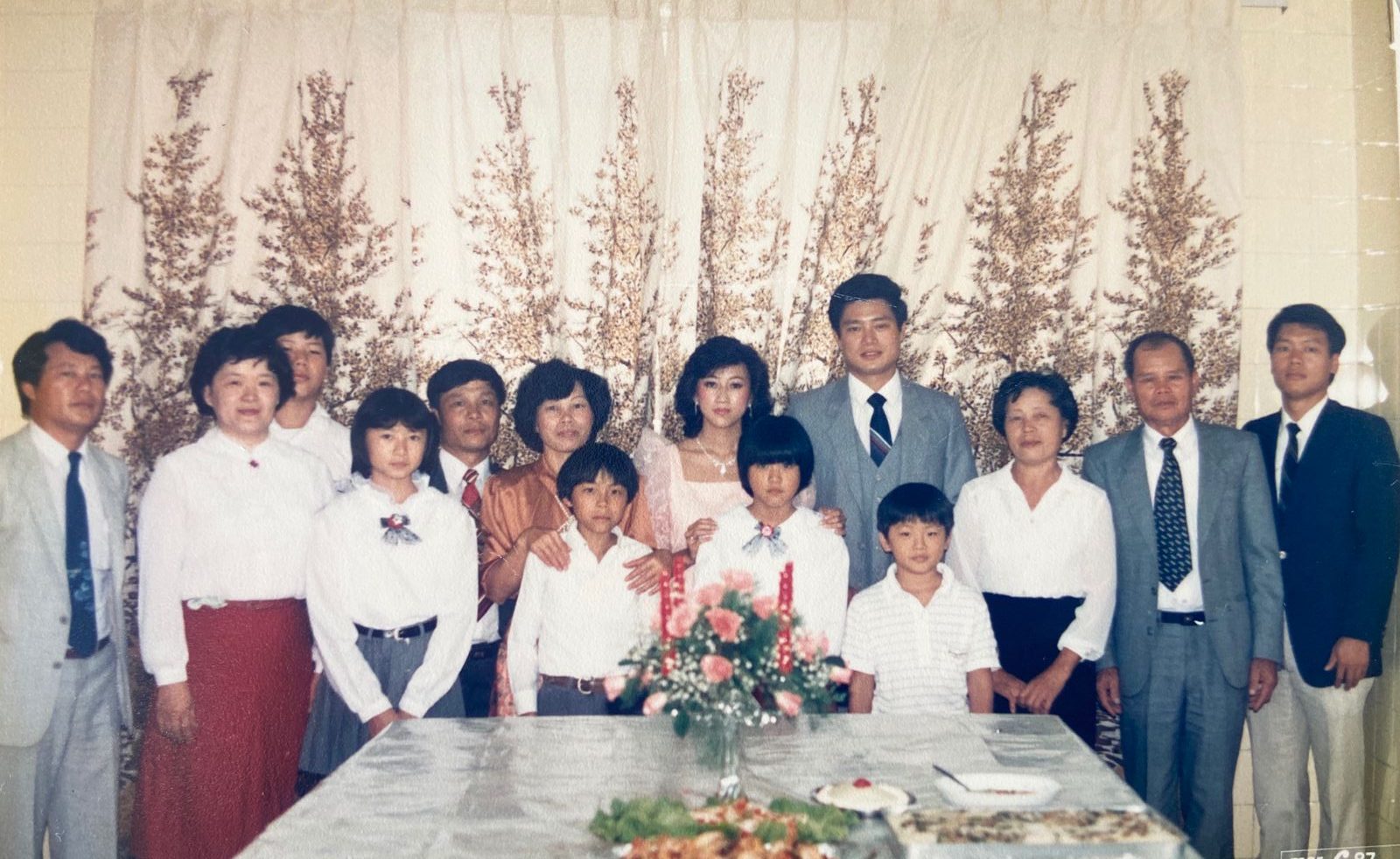 六家族之一王首寶夫婦(右二和三)的全家合照,後排右一為王明惠