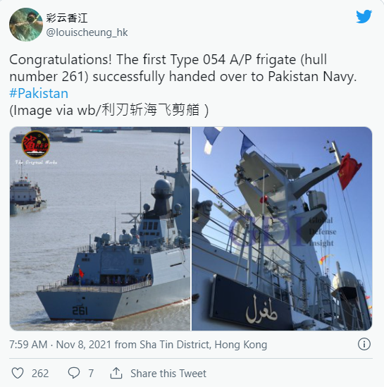 中方週一交付巴基斯坦054型護衛艦,而這是它至今出口噸位最大,也最先進的戰艦。