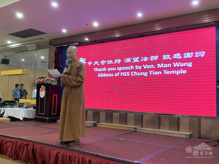 佛光山中天寺住持滿望法師致感謝詞