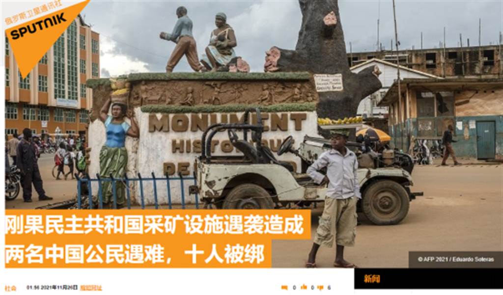 大陸環球網26日引述俄羅斯衛星通訊社、路透社等外媒報導,剛果民主共和國東北部伊圖里省一家採礦營地24日遭遇襲擊,造成兩名中國公民遇害,另有一些人員被綁架。上周,該國剛剛發生礦業公司遇襲事件,5名中國公民在襲擊中被綁架。