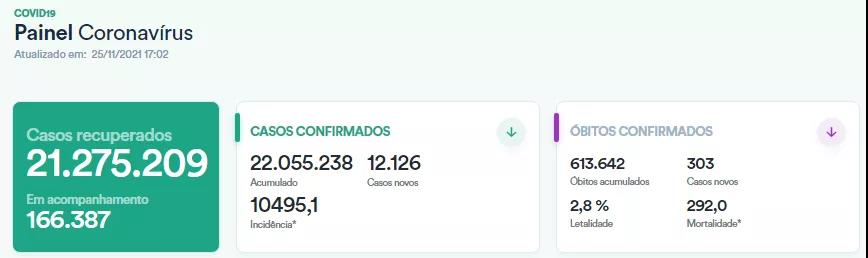 據國家衛生部昨天週四(25日)更新發佈的新冠狀病毒病例資料顯示,共有613642例死亡,相比前一天增加了303例。確診病例達到22055238例,相比前一天增加了12126例。