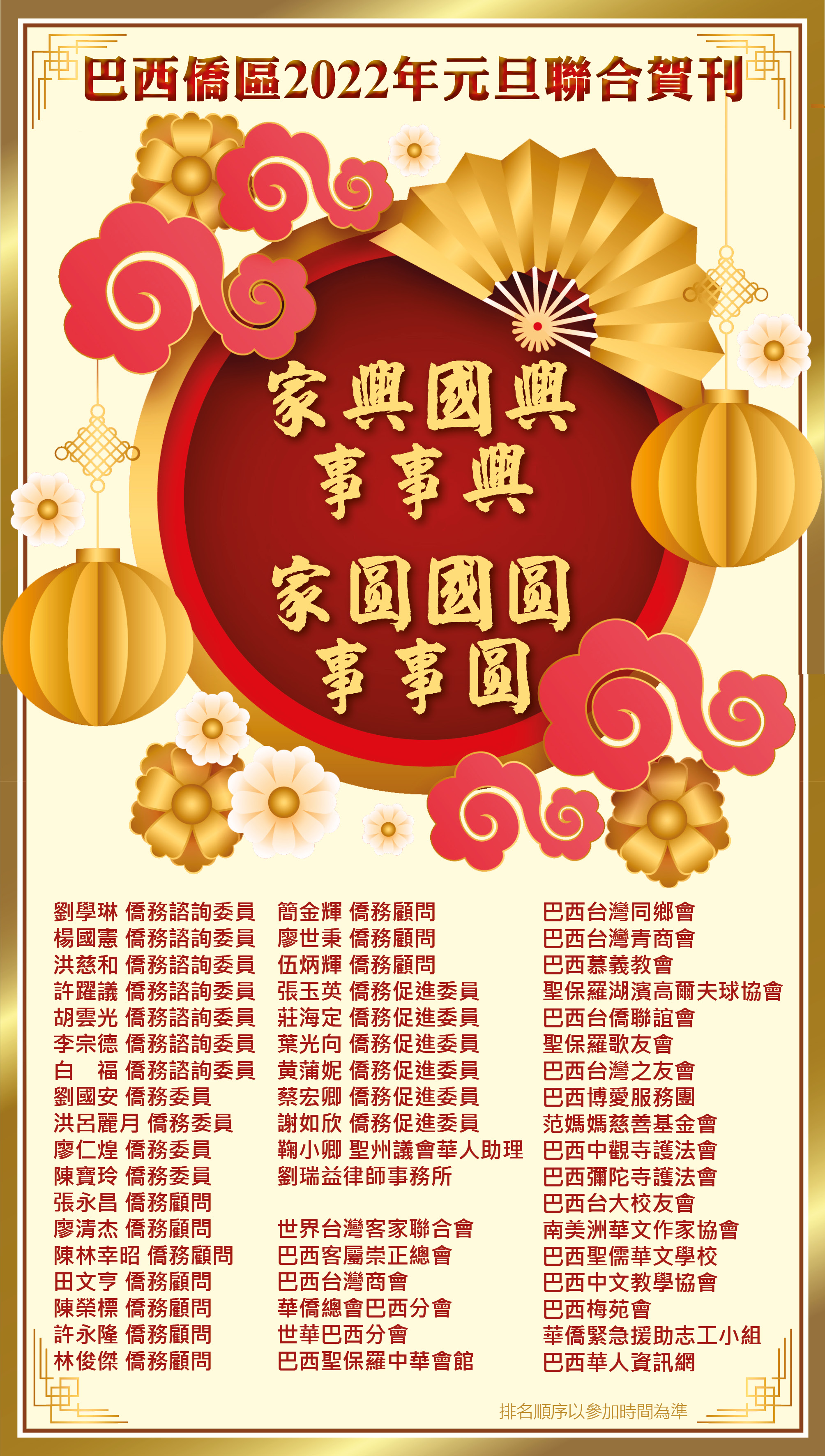 巴西僑區2022年元旦聯合賀刊暨祝賀影片