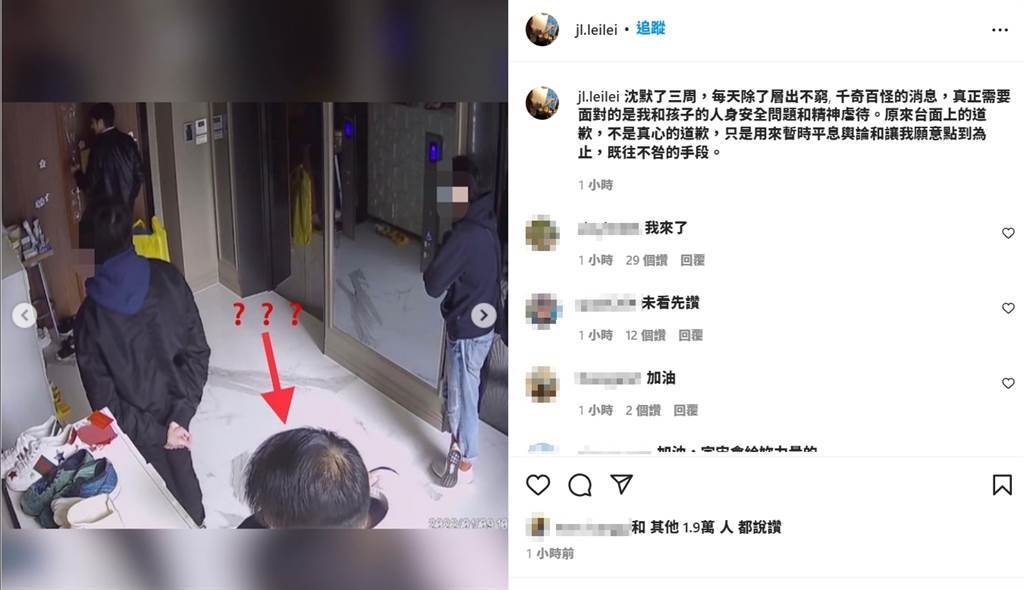 李靚蕾在11日晚突然發文,自己與王力宏約好讓他見孩子,條件是王力宏自己一人前來,但沒想到王力宏沒按門鈴,直接就拿出鑰匙硬闖,還瘋狂搖門,自己透過監視器畫面一看,發現王力宏帶了3個人陪同,2個是工作人員,其中一個則是完全沒看過的陌生人。