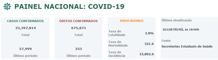 據全國衛生秘書委員會(CONASS)昨天週二(19日)更新發佈的新冠狀病毒病例數據顯示,共有675871例死亡,相比前一天增加了353例。確診病例達到33397814例,相比前一天增加了57999例。