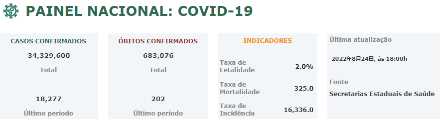 據全國衛生秘書委員會(CONASS)昨天週三(24日)更新發佈的新冠狀病毒病例數據顯示,共有683076例死亡,相比前一天增加了202例。確診病例達到34329600例,相比前一天增加了18277例。