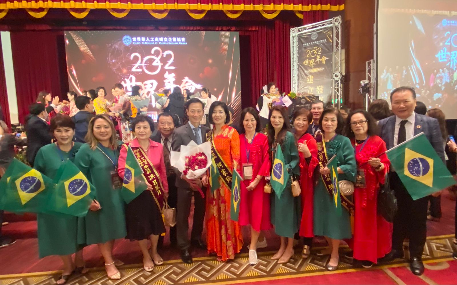 《廖世秉台北報導》世界華人工商婦女企管協會於10月17日上午舉行「世界華人工商婦女企管協會2022世界年會開幕典禮」,下午第9屆華冠奬頒獎典禮,有來自全球79個分會會長及會員們參與,巴西分會廖玉翠會長帶領10幾位姐妹共襄盛舉,場面盛大隆重溫馨。