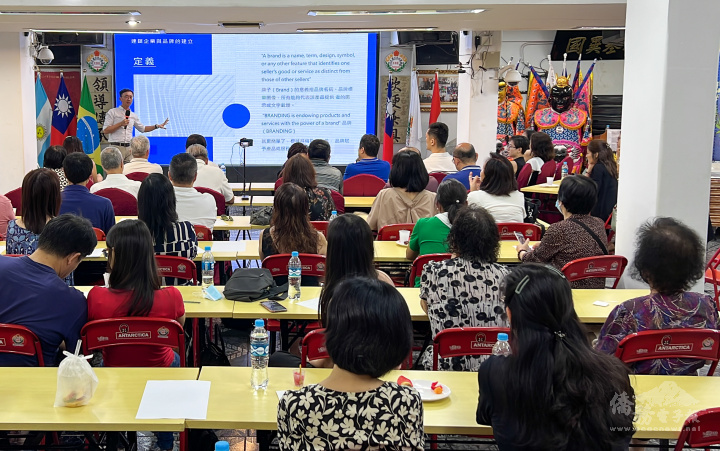 巴拉圭華商經貿聯合會與巴拉圭正能量讀書會11月19日於東方市中華會館會所舉辦「連鎖企業與品牌的建立」專題講座,邀請到亞松森華人高爾夫球聯誼會會長、Bellini S.A董事長李弘基,向僑胞分享經營理念,分析企業如何能夠利用自身優勢有效率的擴大規模與增加企業知名度。