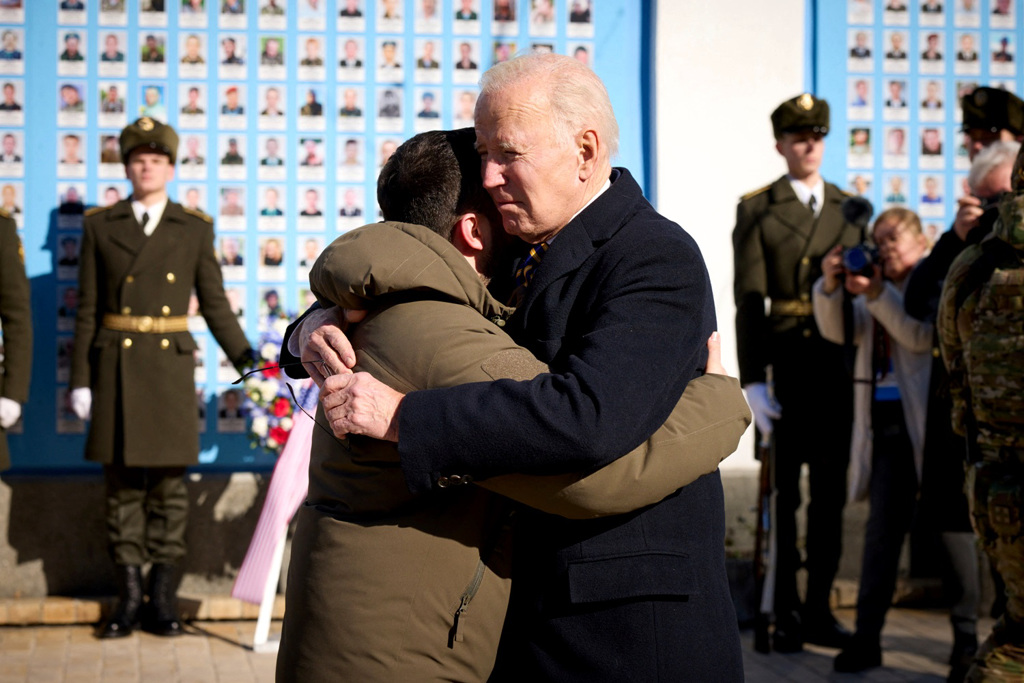 基輔時間20日中午11時34分過後,拜登與烏克蘭總統澤倫斯基(Volodymyr Zelenskyy)一同步行走向聖麥可教堂(St. Michael’s Church),直到這時,拜登訪問基輔的消息才正式曝光,這也是全世界拍到他在基輔的第一張照片。