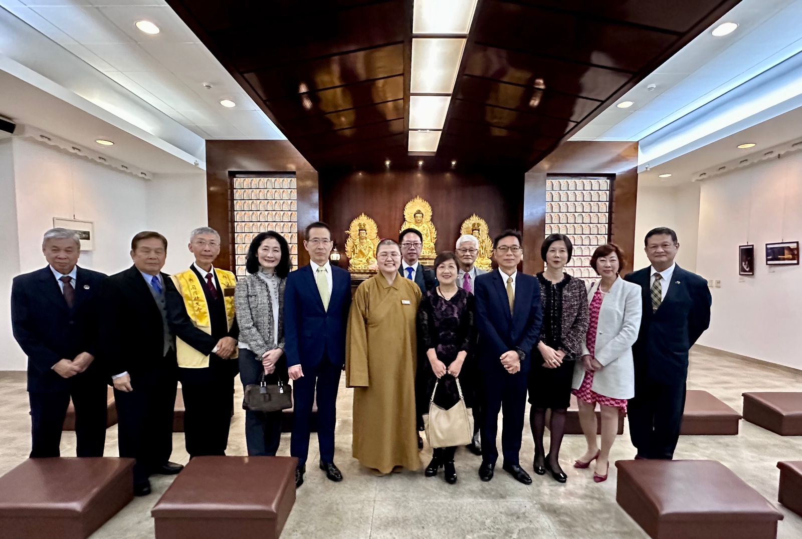 緊接著委員長徐佳青一行人前往四樓佛光緣訪視,由如來寺住持妙佑法師和巴西佛光協會許永隆會長帶領佛友們熱情的歡迎接待,妙佑法師帶領貴賓們上香祈福,並致贈星雲大師的墨寶掛軸給徐佳青委員長。簡略介紹如來寺的發展歷程,隨後在大家大合照圓結束訪視行程。