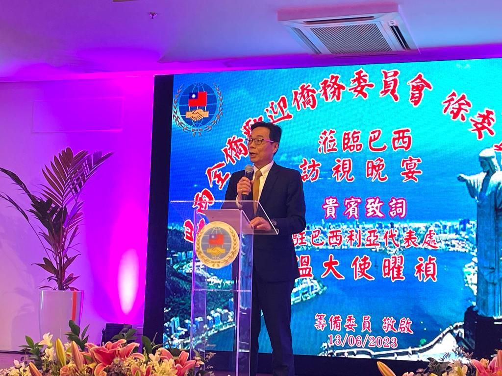 馮光中處長致詞中分享來巴西服務近三年的自身經驗,用簡單的數據說明僑界的現狀與動態。目前台灣僑民正確人數應是3-5萬人,最多10萬人。巴西僑界目前在積極活動的大約是二十多個。台灣僑胞非常注重子女的教育,巴西僑界人才濟濟,士農工商、法律、醫生、科技、大氣、地質、水利工程等,人才薈萃,我們台灣醫師協會正式登記的會員超過250位,在各行各業都能展露頭角。