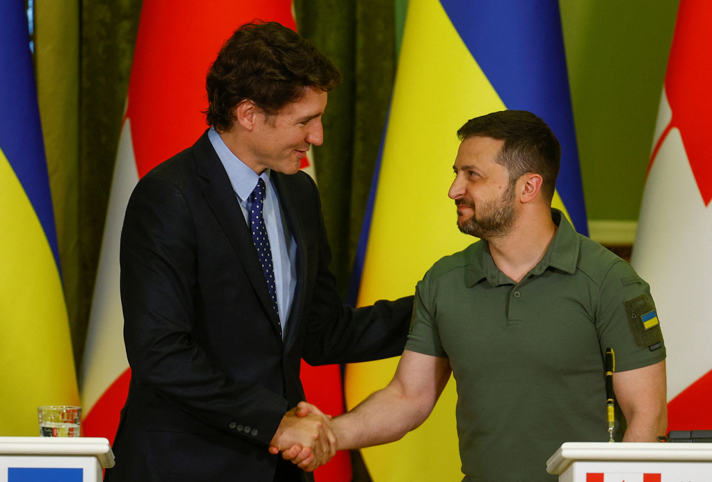 美國有線電視新聞網報導,杜魯道此行並未事先公告周知,他抵達基輔之後,澤倫斯基在Telegram發文宣布「歡迎加拿大總理杜魯道與其團隊代表到訪基輔」。兩人在聯合記者會後發布聯合聲明,「烏克蘭人民可仰仗加拿大,只要烏克蘭有需要,加拿大會在政治、財政、人道、軍事等層面提供支援,加拿大會以個別國家管道支持,也會透過7大工業國集團、北約、聯合國與其他任何論壇的國際合作形式承擔重任」。