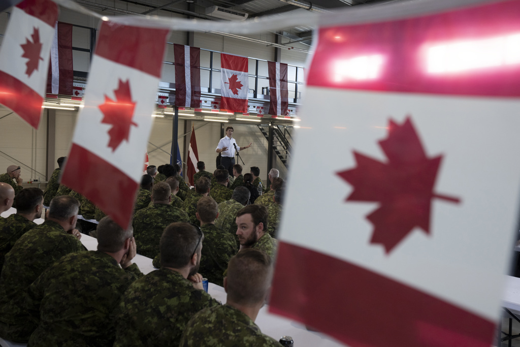 杜魯道與拉脫維亞總理卡林斯(Krisjanis Karins)簽署一項協議後,在拉脫維亞的阿達齊(Adazi)軍事基地舉行聯合記者會。杜魯道表示:「我們將把加拿大駐軍人數增加一倍以上…以服務並捍衛民主與法治。」