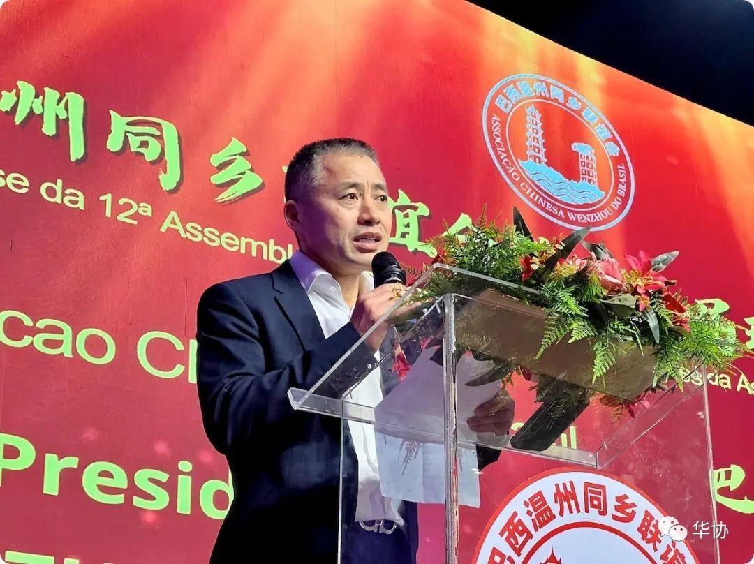 前任會長林海平雖未能親臨現場,但他特意製作了一枚精美的石章,並通過視頻向朱軒初會長和新一屆領導班子表達了祝賀和認可之情。新任會長朱軒初在致詞中簡單介紹了會內情況,巴西溫州同鄉聯誼會成立於2000年,歷經23年來,同鄉會一直秉持「愛僑愛鄉,奉獻祖國,回饋當地」的宗旨為僑服務。他強調,這要感謝歷屆領導和理監事的無私奉獻。朱軒初會長表示,新一屆將更加注重為僑民服務,不論大事小事,要做得更好、更細。更加努力地帶領同鄉會融入巴西主流社會。