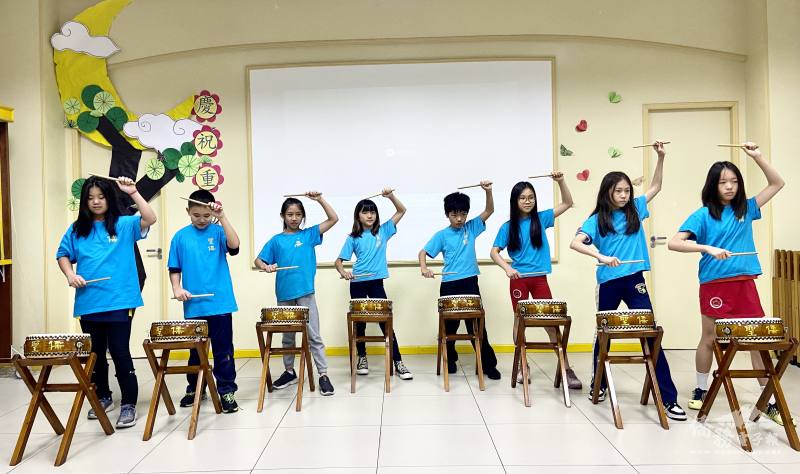 聖儒華校學生表演太鼓