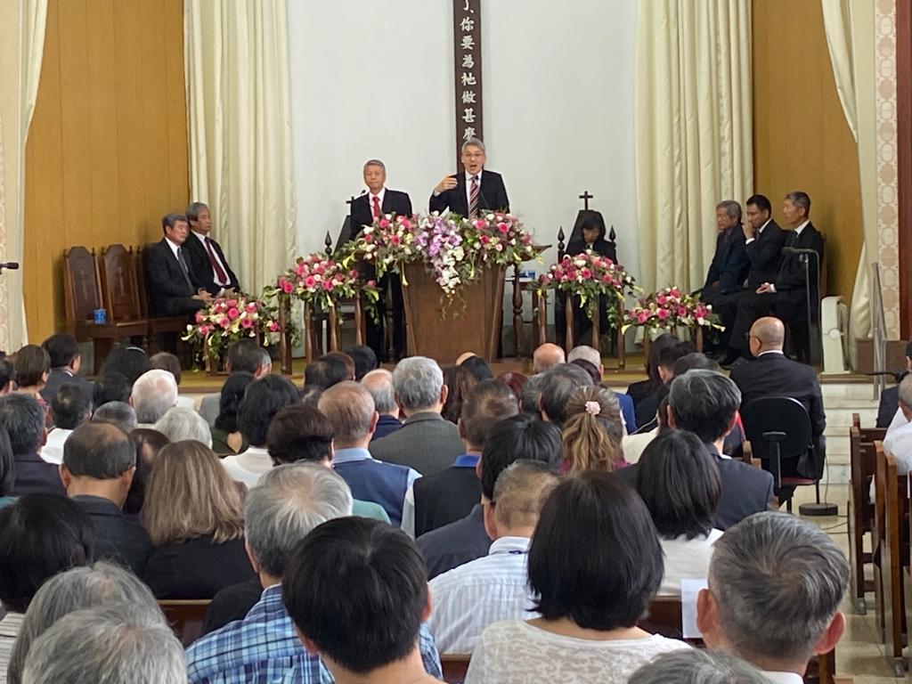 鄭牧師介紹出席貴賓:駐聖保羅台北經濟文化辦事處馮光中處長伉儷、徐澤玗組長、僑教中心張希賢主任、台貿中心施㦤倫主任、廖仁煌和劉國安僑務委員伉儷、劉國華僑務諮詢委員伉儷及牧長、教會代表。王明惠長老代表教會致謝詞,感謝歷任牧師的造就,長官們的關心,今天的主領者、牧師、教會代表及所有弟兄姐妹們的參與。讚美詩班獻唱經典聖詩歌曲「直到祂來」。整個感恩禮拜在許輝世牧師的祝禱下圓滿落幕。