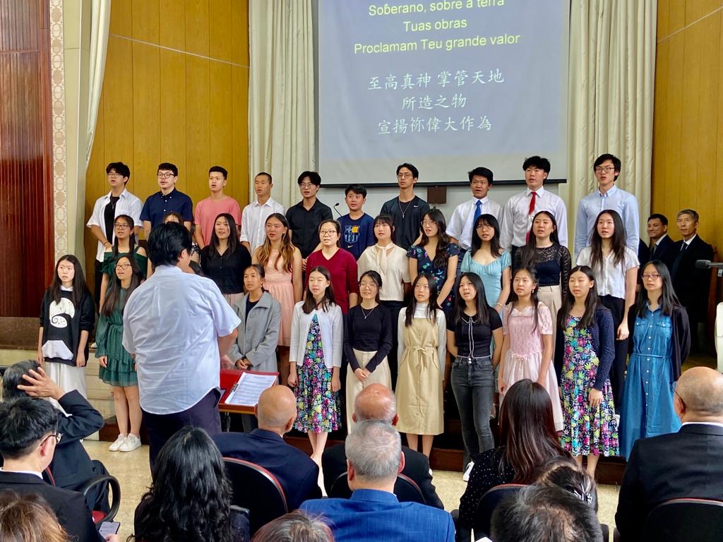 馮光中處長致詞時表示𧫴代表中華民國台灣政府感謝慕義教會60年來帶領會友們服務台灣僑社的僑民,還有巴西的子弟們,讓他們在身心靈上,在事業工作上找到自己人生該走的路,祝賀教會未來的60年獲得上帝更多的賜福,每個人身體健康平安喜樂。