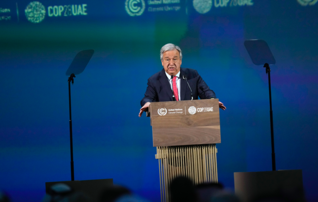 路透社報導,聯合國(UN)秘書長古特瑞斯(Antonio Guterres)呼籲,聯合國氣候變化綱要公約第28次締約方會議(COP28)與會領袖應同意大幅減少排放、阻止全球暖化幅度超過攝氏1.5度。