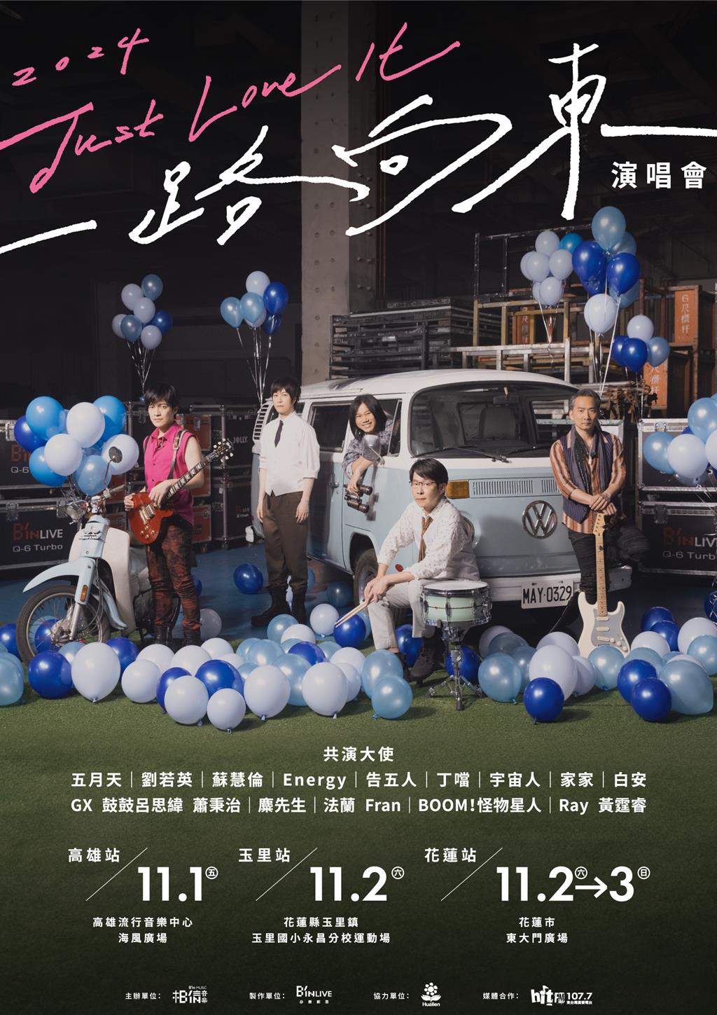 今年4月花蓮發生7.2規模大地震、之後又頻繁出現大型餘震,不僅重創當地基礎建設,更嚴重打擊花蓮觀光產業,造成當地許多民眾經濟困窘。天團「五月天」為此號召劉若英、蘇慧倫、Energy、告五人、丁噹、宇宙人、GX鼓鼓呂思緯 蕭秉治、家家、白安、麋先生、法蘭 Fran、BOOM!怪物星人、Ray 黃霆睿無酬送愛,14組共演大使將於11月1、2、3日於花蓮、高雄接連參與4場「2024 Just Love It!一路向東」公益演唱會。