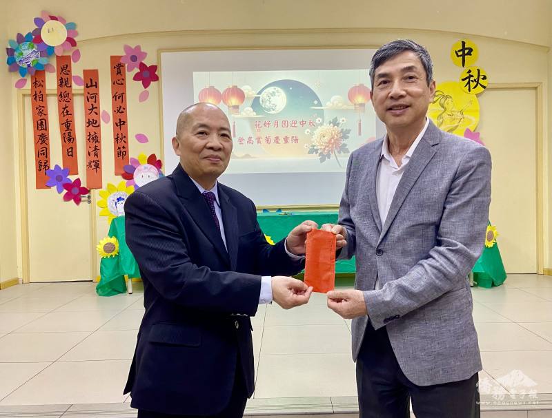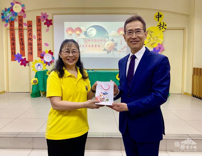 尤正才很高興大家聚在一起慶祝中秋節,非常溫馨,並代表文教中心感謝聖儒華校對社區的貢獻服務;松柏學院透過終身學習的實踐,讓學生在僑居生活更豐富,藉由今日慶祝中秋節和重陽節,傳達重視傳統文化的精神,以及文化之美。