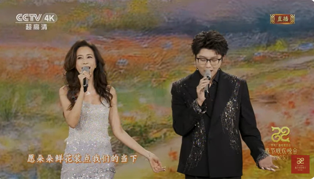 接著登場的是影歌視三棲的女星莫文蔚,已數度登上春晚的她,對舞台不陌生,這回搭配大陸歌手毛不易,一起合唱〈歲月裡的花〉,向來以大長腿示人的莫文蔚,這回身穿銀色珠光亮片的長版禮服,將以往的性感風格轉為沉穩內斂,但歌聲依舊成熟有韻味,網友看了也相當捧場,「還是很美」、「華語歌壇響噹噹的實力唱將」、「嗓音還是很獨特啊」。