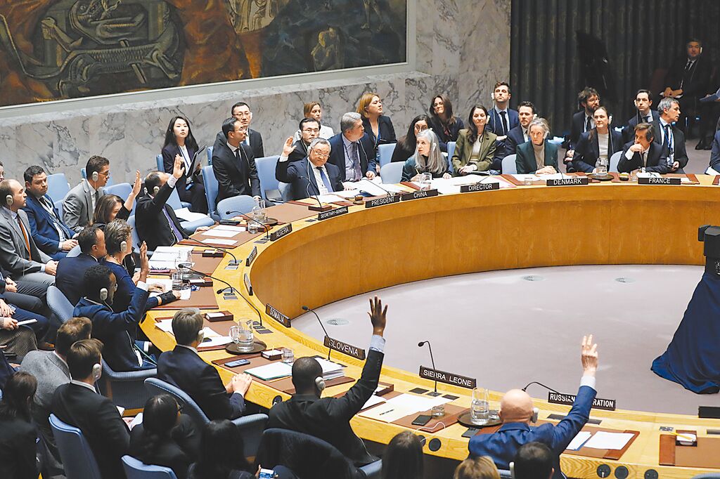 美國在安理會提出的決議草案題為《通往和平之路》,重申《聯合國憲章》的宗旨是維護國際和平與安全以及和平解決爭端,呼籲迅速結束衝突,並進一步敦促烏俄實現持久和平,但未包括「譴責俄羅斯入侵、支持烏克蘭領土完整」等字眼。英法等共同提出的修正案皆未能通過,最後表決時,美中俄等10國投贊成票,英法等5個歐洲國家投棄權票,草案獲通過,成為安理會第2774號決議。