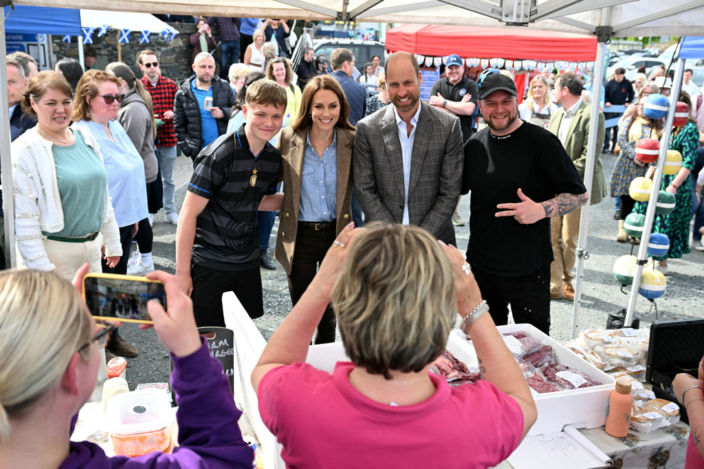 威凱都穿著淺藍色襯衫與深色長褲,外罩休閒外套露面,此行在蘇格蘭停留2天,公開行程包括參觀由皇家基金會資助翻新的社區中心,兩人受邀在牆壁上作畫,各畫了一朵花。凱特提及20年前學生時代造訪此地時買了2幅水彩畫,如今掛在家中臥室。夫妻倆並肩在貫穿托伯莫里的道路上散步逛市集,不時與居民握手合影。兩人發布相擁照之後,也公布一段在馬爾島參訪的短片與許多照片,謝謝當地民眾給了他們一個美好的下午,讓兩人感受到島民的生命力與情感連結。