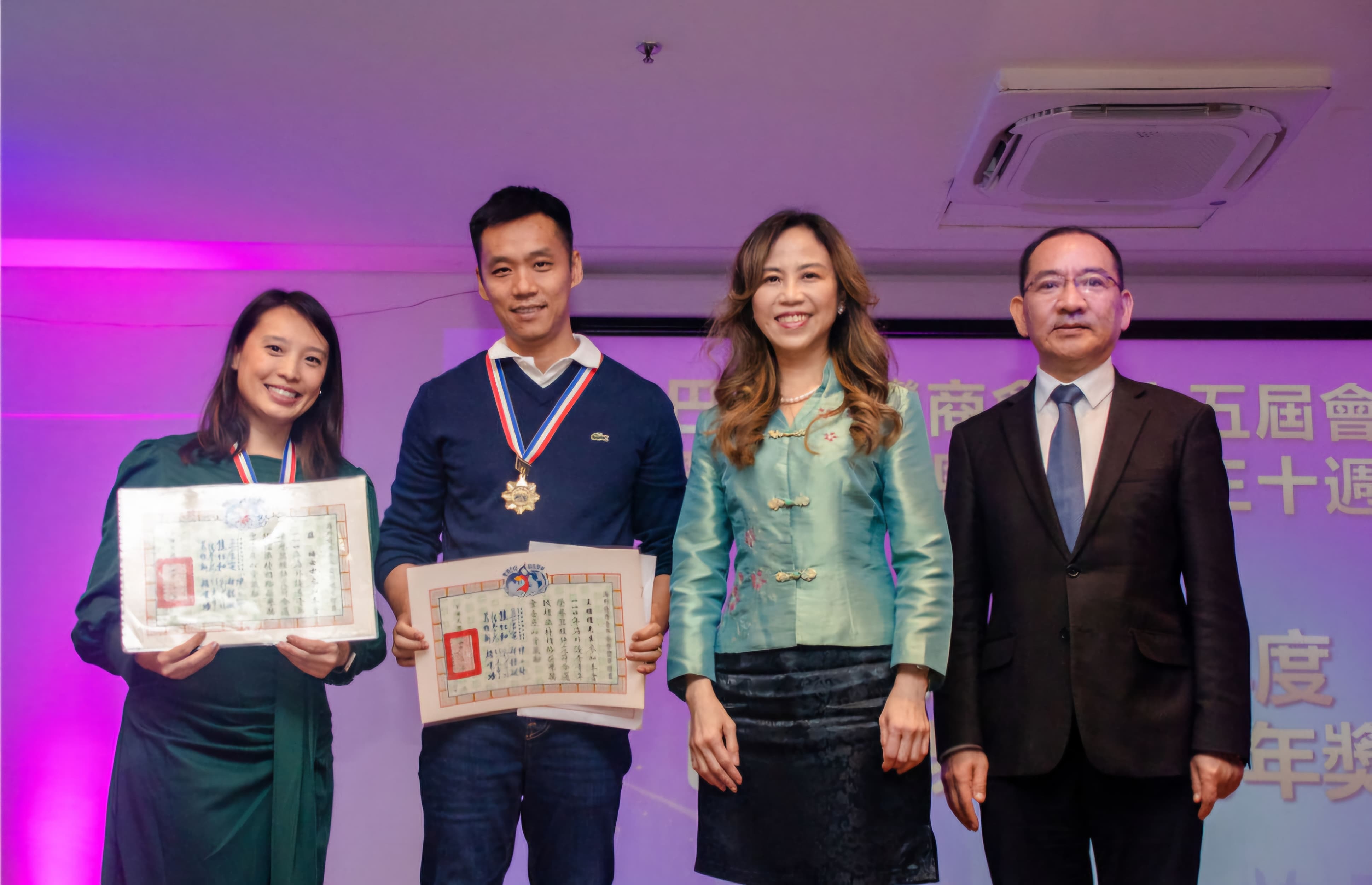 朱怡靜處長致詞時感謝蔡會長任内對巴西台商會的付出,同時祝賀新當選葉會長新的團隊接下重任,在未來繼續帶領巴西台商會邁向新的里程碑。巴西台商會是連結台灣的橋樑,期待台商會跟聖保羅辦事處共同努力為台灣爭取最大空間。請各位支持我們的臉書及F平台,幫我們按讚分享,是給我們最大鼓勵。朱處長和𡯁主任共同頒發僑委會僑務顧問聘書給蔡逢興與僑務諮詢委員聘書給黃聰煌。同時頒發2025年度巴西僑界優秀青年獎章與獎狀給蘇珊以及王維禮。
