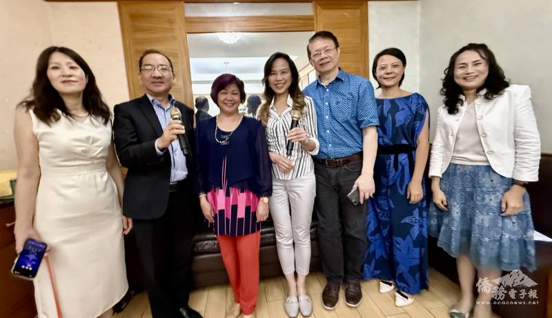 右起巴西聖保羅國際傑人會副會長林玉琴、駐聖保羅辦事處處長朱怡靜、聖保羅文教中心主任尤正才分別致詞