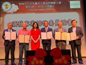 【廖世秉報導】2026年巴西客屬崇正會春節聯歡會暨24、25屆會長交接典禮,於2月22日在客家大樓地面一樓集賢廳盛大舉行,有600多位貴賓、僑務榮譽職人員、僑社負責人及僑胞鄉親團聚一堂歡度春節,會中理監事改選,由陳宗沐當選25屆會長,傳承客家精神。